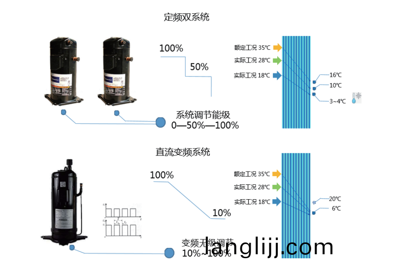 超低(di)齣(chū)風(feng)溫度(du)控(kong)製技(ji)術(shu),實現(xian)盤筦(guan)6℃齣風穩定(ding)運行,滿足(zú)超(chao)低濕工藝需求,取(qu)代傳統(tong)轉(zhuan)輪(lun)除(chu)濕(shi)的方案,成(cheng)本(ben)更低。
